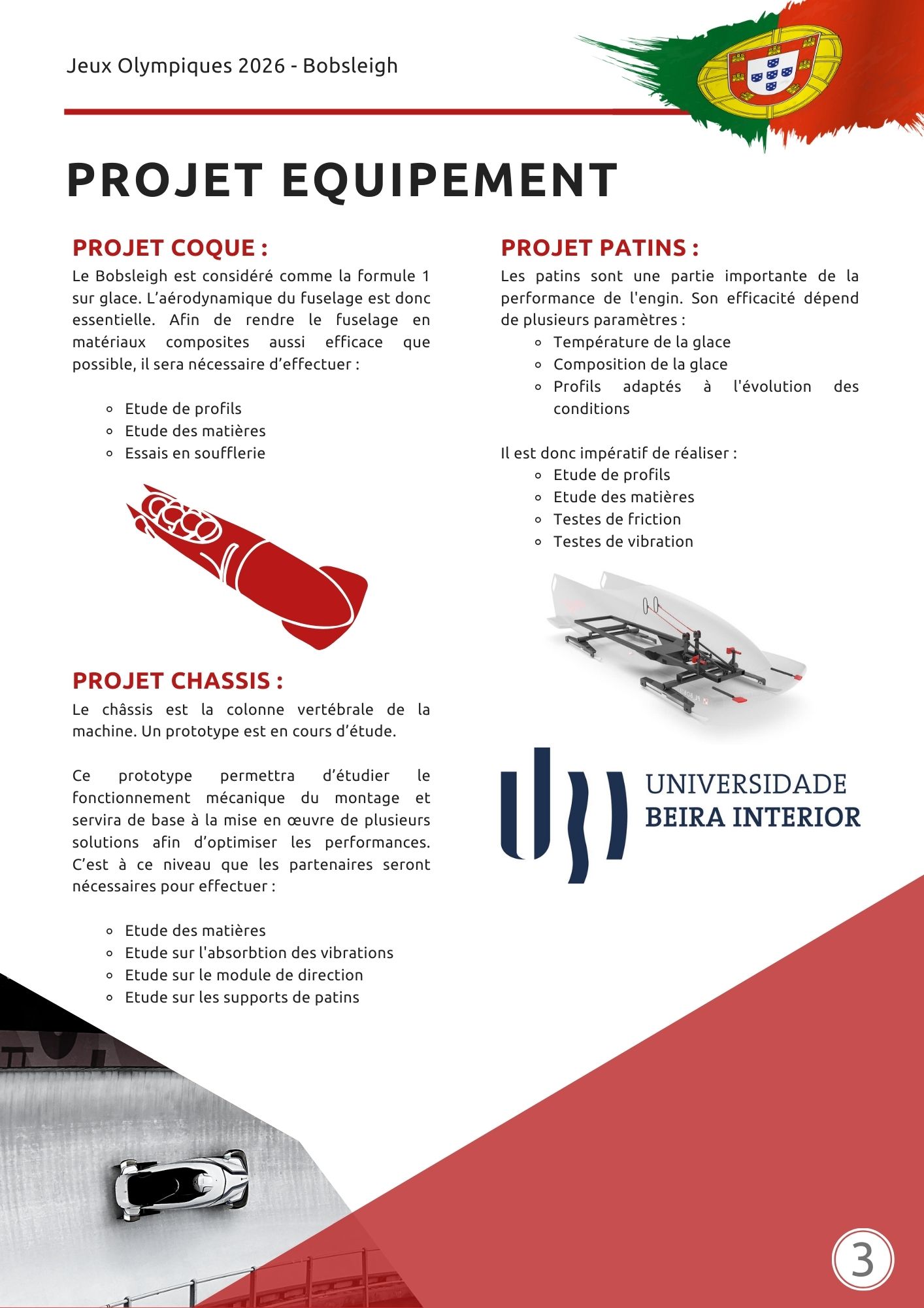L’objectif est de faire du Portugal un nation plus forte jour après jour dans les sports de glisse. Le Bobsleigh au sein de la Fédération du Portugal est de retour pour la première fois depuis les Jeux Olympiques de Calgary au Canada en 1988.